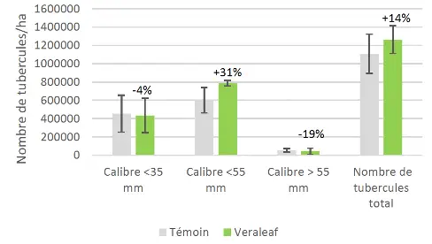 *Chiffre issu d'un essai 2024 sur pommes de terre (Caesar) dans le Pas-De-Calais en comparaison à la conduite culturale classique sans les produits Veragrow